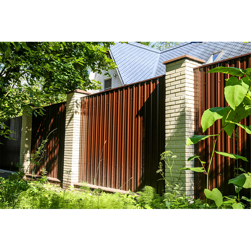 Установка блоков обходится намного дешевле, чем устройство кирпичного забора той же высоты. После монтажа забора блоки окрашиваются фасадной краской по бетону в цвет, который более всего подходит вашему дому.