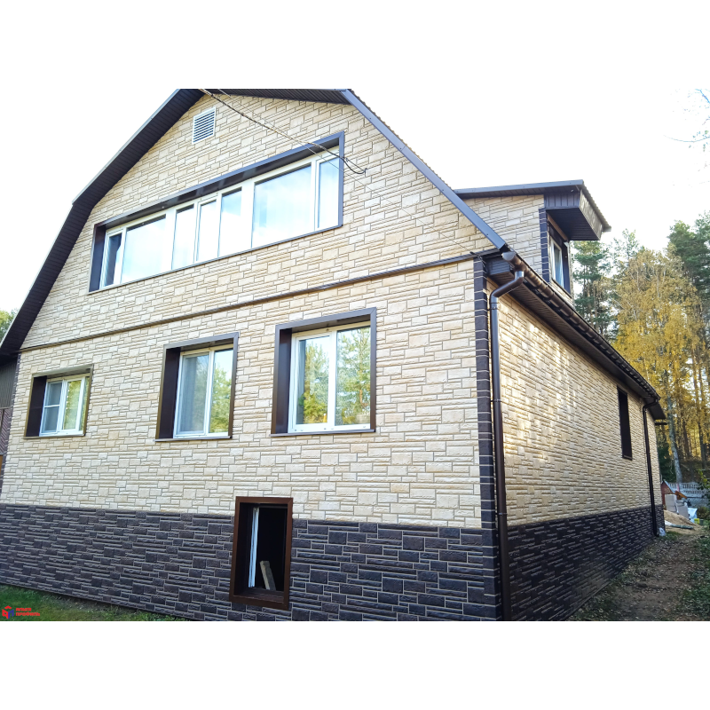 Фасадная панель под жженый камень с комбинацией из набора пластин разной величины коллекции Камень от Альта-Профиль. Панель изготовлена из полипропилена методом литья под давлением, имеет небольшой вес, поэтому не создает дополнительной нагрузки на несущие конструкции. Материал устойчив к грибку, плесени и коррозии. За счет ребер жесткости и увеличенной толщины (23 мм), панели устойчивы к механическим и температурным воздействиям, не деформируются. Многослойное окрашивание надежно защищает от УФ-лучей, обеспечивая сохранность цвета долгие годы.