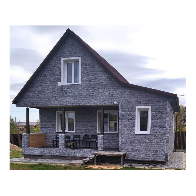 Георгий Лосево 04.04.2022 Отделал этими панелями цоколь, пространство под оконными проемами, углы. Нужный цвет и доборные элементы были в наличии, цена – приемлемая, забрал самовывозом сразу после оплаты. На фасаде комбинировал с декоративной штукатуркой. Получилось необычно, очень красиво, результатом доволен.