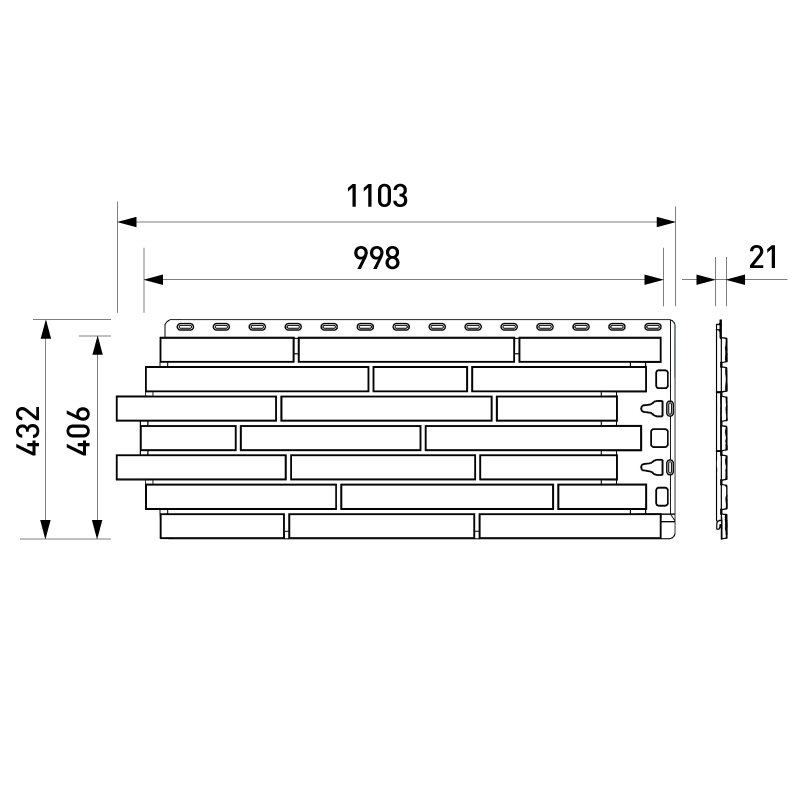 Фасадная панель с имитацией кладки узкого клинкерного ригельного кирпича из коллекции KLINKER от Деке. Цветовые акценты и контрастные швы придают панелям особую выразительность и неординарный внешний вид. Панель изготовлена из полипропилена методом литья под давлением, имеет небольшой вес, поэтому не создает дополнительной нагрузки на несущие конструкции. За счет специальной трехступенчатой системы окраски, материал невосприимчив к УФ-лучам и атмосферным осадкам. Конструкция панели усилена ребрами жесткости, что обеспечивает повышенную устойчивость к механическим нагрузкам. Панели легко и надежно скрепляются между собой, монтируются на обрешетку. Монтаж можно производить в любое время года, за исключением сильных морозов (не ниже -15°С)