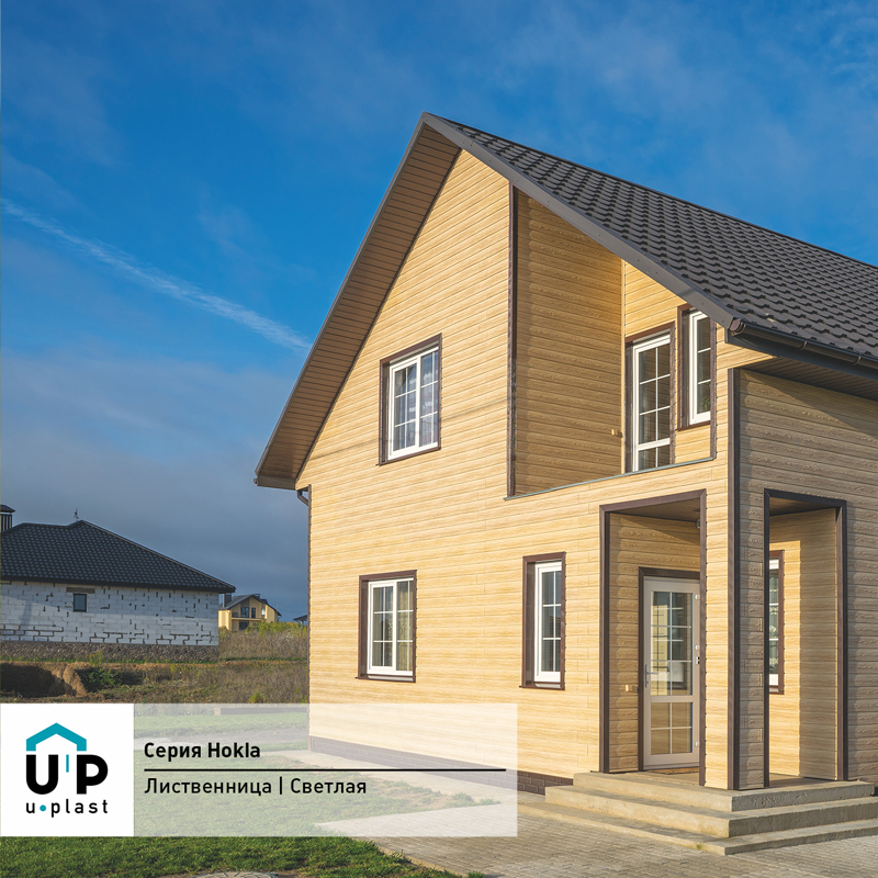 Фасадная панель Ю-Пласт Hokla Лиственница Светлый — оптимальное сочетание надежности и эстетичного вида. Материал точно имитирует вид натурального дерева: дом будет выглядеть респектабельно, при этом отделка не вызовет сложностей и прослужит долго без особых усилий с вашей стороны.