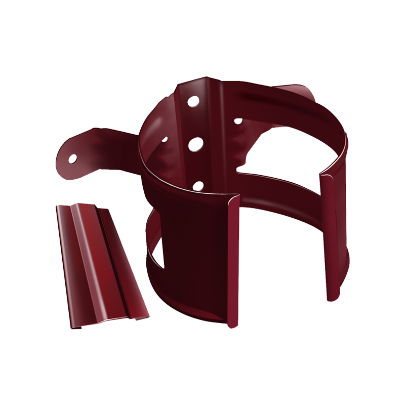 Хомут трубы на дерево D90 мм винно-красный RAL3005 с покрытием Granite Double от Гранд Лайн. Используется для фиксации водосточной трубы на стенах строений. Поставляется в комплекте с крепежом для дерева.