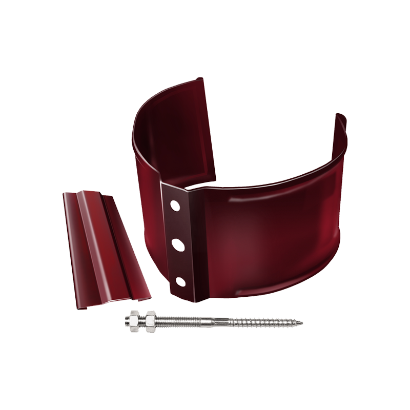 Хомут трубы на кирпич D90 мм винно-красный RAL3005 с покрытием Granite Double от Гранд Лайн. Используется для фиксации водосточной трубы на стенах строений. Поставляется в комплекте с крепежом для кирпича.