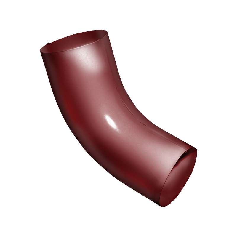 Колено трубы D90 мм 60° коричнево-красное RAL3011 с покрытием Granite Double от Гранд Лайн. Элемент водосточной системы, применяется для отведения водосточной трубы от выпускной воронки, расположенной у края ската кровли, к стене, а также от выступающих элементов фасада.
