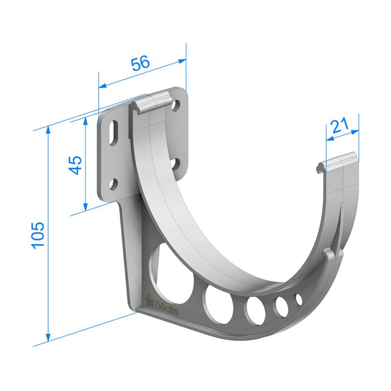 Кронштейн желоба ПВХ D120 мм белый серии STANDARD от производителя Docke. Кронштейн используется для фиксации водосточного желоба и монтируется на лобовую доску. Также возможна его установка и без лобовой доски, для этого используется дополнительный элемент – регулируемое крепление. Пластиковые водосточные системы Döcke представлены в трех сериях: базовая STANDARD, продвинутая PREMIUM и дизайнерская LUX. И позволяют организовать водоотвод с кровли любой сложности. Изящные конструкции и цветовая гамма водостоков украсят строение в любом архитектурном стиле. Водосток серии STANDARD подходит для небольших кровель площадью до 150 м². ОСОБЕННОСТИ ВОДОСТОКА STANDARD: – Диаметр желоба: 120 мм. – Пропускная способность желоба: 1,5 л/сек на п.м. – Диаметр трубы: 80 мм. – Пропускная способность трубы: 5,3 л/сек. – Толщина стенок: 1,7 мм. На всех соединительных элементах присутствуют пластиковые выступы — ограничители монтажа, что существенно облегчает монтаж и позволяет избежать ошибок при сборке. Фитинги для желобов снабжены резиновыми уплотнителями, которые обеспечивают эффективное и плотное соединение и придают герметичность водосточной системе. Пластиковые водостоки Деке отличаются высоким качеством и совмещают функциональность и красоту. Могут функционировать при критически низких и высоких температурах, рассчитаны на российский климат. Гарантия на отсутствие деформации под воздействием климатических факторов составляет 25 лет. Гарантия на стабильность цвета — 7 лет. Водосточная система Docke из пластика подходит для всех типов скатных кровель дач и загородных домов. Это надежное и красивое решение водостока для крыши! Всегда в наличии на нашем складе водостоки Деке в цветах Белый, Коричневый, Пломбир, Шоколад, также предлагаем водосточные системы в цветах Гранат и Графит. Купить кронштейн желоба ПВХ D120 мм Docke STANDARD белый по низкой цене вы можете в нашем интернет-магазине Удачная покупка. Наши менеджеры помогут с выбором и рассчитают необходимое количество элементов водостока.