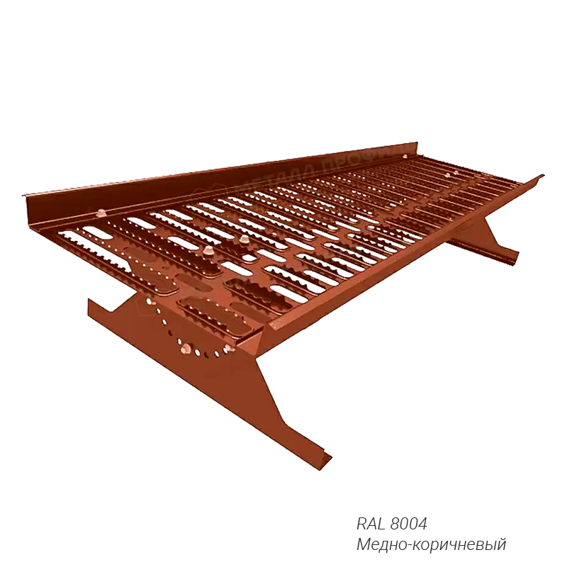 Кровельный переходной мостик Металл Профиль Премиум под металлочерепицу и битумную черепицу длиной 1,25 м. Служит для удобного и безопасного передвижения по скатной кровле при проведении монтажных и ремонтных работ. Оснащен бортиками и поперечными ребрами жесткости в основании. Противоскользящие зубцы обеспечивают безопасное перемещение в любую погоду. Особенности переходного мостика Металл Профиль Премиум: • ͗Изготовлен из оцинкованной стали с порошковым окрашиванием • ͗Допустимая нагрузка – 100 кгс • ͗Предельная нагрузка – 221 кгс • ͗Ширина платформы – 395 мм • ͗Гарантия производителя – 25 лет Комплектация: – 1 платформа мостика – 2 верхних кронштейна – 2 нижних кронштейна – 6 болт-шурупов d8х50 (для фиксации кронштейна к крыше) – 14 болтов М8х20 (для соединения кронштейнов между собой) – 14 гаек М8 – 20 шайб d8 – 2 прокладки из пластиката H-14 мм – 8 прокладок из пластиката H-7 мм Купить кровельный переходной мостик Металл Профиль Премиум с длиной секции 1,25 м под металлочерепицу и битумную черепицу по выгодной цене вы можете в нашем интернет-магазине Удачная покупка.