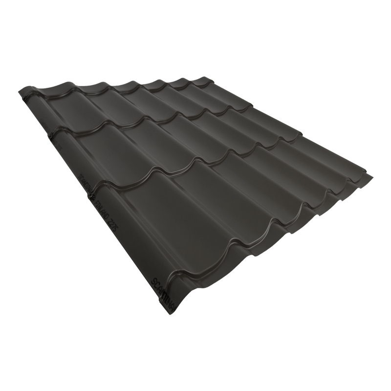 Металлочерепица Scandinavia (Скандинавия) с глянцевым покрытием Полиэстер, толщиной стали 0,5 мм. Производится из оцинкованной стали оптимальной толщины, достаточной для качественного профилирования. Слой цинка обеспечивает надежную защиту металлочерепицы от образования ржавчины и коррозии. Экономичное и универсальное покрытие Полиэстер толщиной 25 мкм устойчиво к перепадам температур и подходит для любых климатических зон. Обладает хорошей стойкостью цвета. Хорошо зарекомендовало себя благодаря своим характеристикам и невысокой стоимости. Популярный профиль в форме бегущей волны является классикой и идеально гармонирует с любым архитектурным стилем дома. Металлическая черепица Scandinavia выпускается в нескольких вариантах, с длиной листа 470, 1170, 2220 и 3620 мм. Удобные размеры позволяют использовать металлочерепицу на кровлях любой площади и конфигурации, сокращают количество обрезков кровельного материала, а также ускоряют и упрощают монтаж. Металлочерепица Скандинавия представлена в наиболее распространенных цветах, используемые для кровли. Оттенки из палитры RR отличаются природным скандинавским спокойствием. Коричневая крыша — классическое и универсальное цветовое решение. Кровля в цвете RR32 Темно-коричневый сочетается со всеми пастельными оттенками фасадных материалов. Такой цвет кровли лучше всего подойдет консерваторам, создаст ощущение спокойствия и защищенности. Купить металлочерепицу Скандинавия 0,5 мм Полиэстер в цвете RR32 с длиной листа 1170 мм по приятной цене вы можете в нашем интернет-магазине Удачная покупка. Наши менеджеры произведут расчет кровельного материала и необходимых комплектующих.