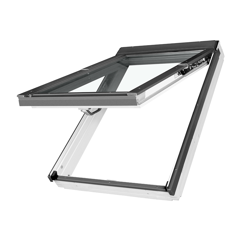 В конструкции мансардного окна PPP-V preSelect® предусмотрено 4 контура уплотнения, что обеспечивает максимальную защиту от продувания и хорошую звукоизоляцию, комфорт при закрывании оконной створки. Удобная ручка позволяет легко открывать-закрывать мансардное окно и фиксировать его в двух положениях проветривания.