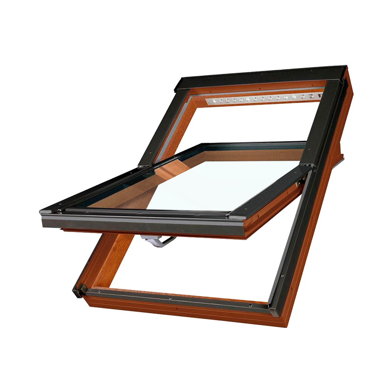 В конструкции мансардного окна PТР-V предусмотрено 4 контура уплотнения, что обеспечивает максимальную защиту от продувания и хорошую звукоизоляцию, комфорт при закрывании оконной створки. Удобная ручка, расположенная в нижней части оконной створки, позволяет легко открывать-закрывать мансардное окно и фиксировать его в двух положениях проветривания.