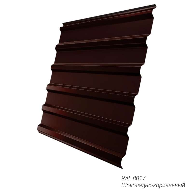 Профнастил имеет профиль C20R (высотой 20 мм). Толщина стали составляет 0,5 мм. Колеровка — заказная. Можно подобрать идеальный цвет для любого проекта.