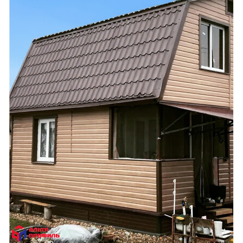 Татьяна д. Углово 31.10.2021 Долго не могли подобрать цвет для дома к синей крыше. В магазине наше внимание обратили на эту серию АльтаПрофиля . Понравились все цвета, но остановились на этом, потому, что хотели темный. Со стороны смотрится , как настоящее дерево, красиво. Но при этом не требует постоянного ухода. Прекрасная альтернатива дереву и краске. Выбирайте смело , рекомендуем.