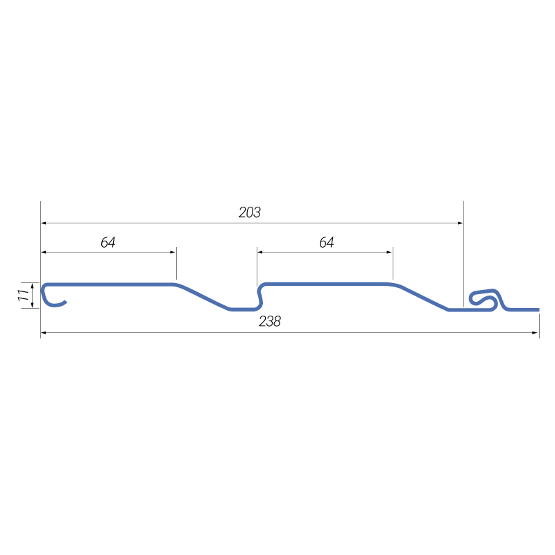Длина изделия составляет 3660 мм. Высота — 203 мм. Вид профиля — Корабельный брус: прост в монтаже, не нагружает конструкцию здания.