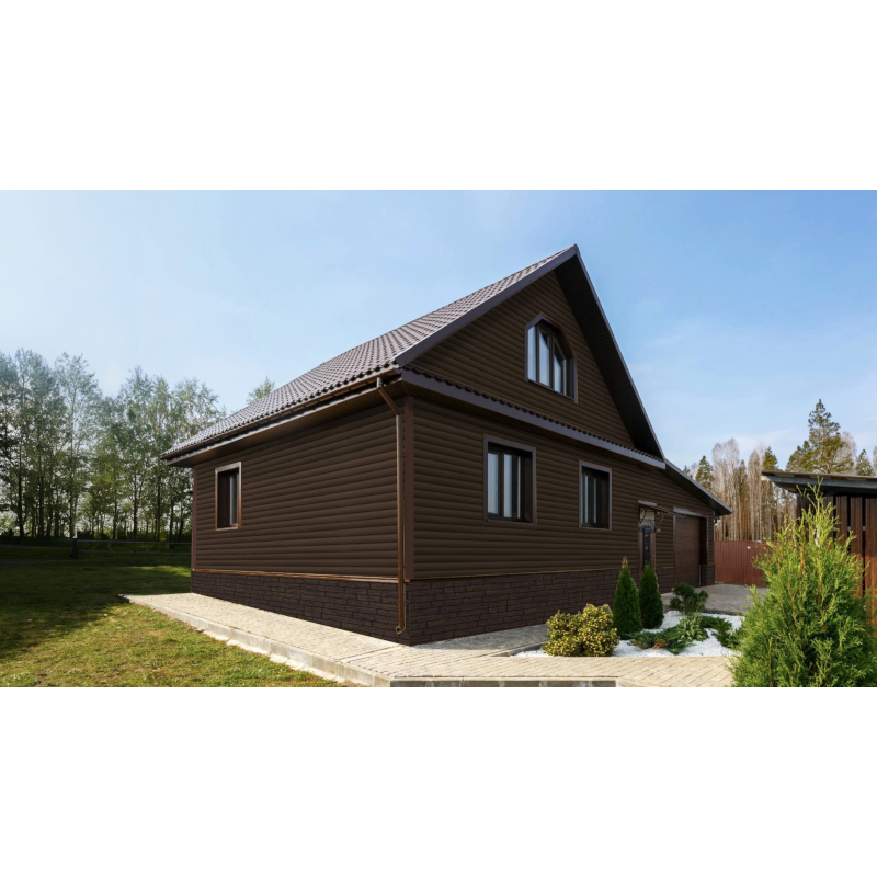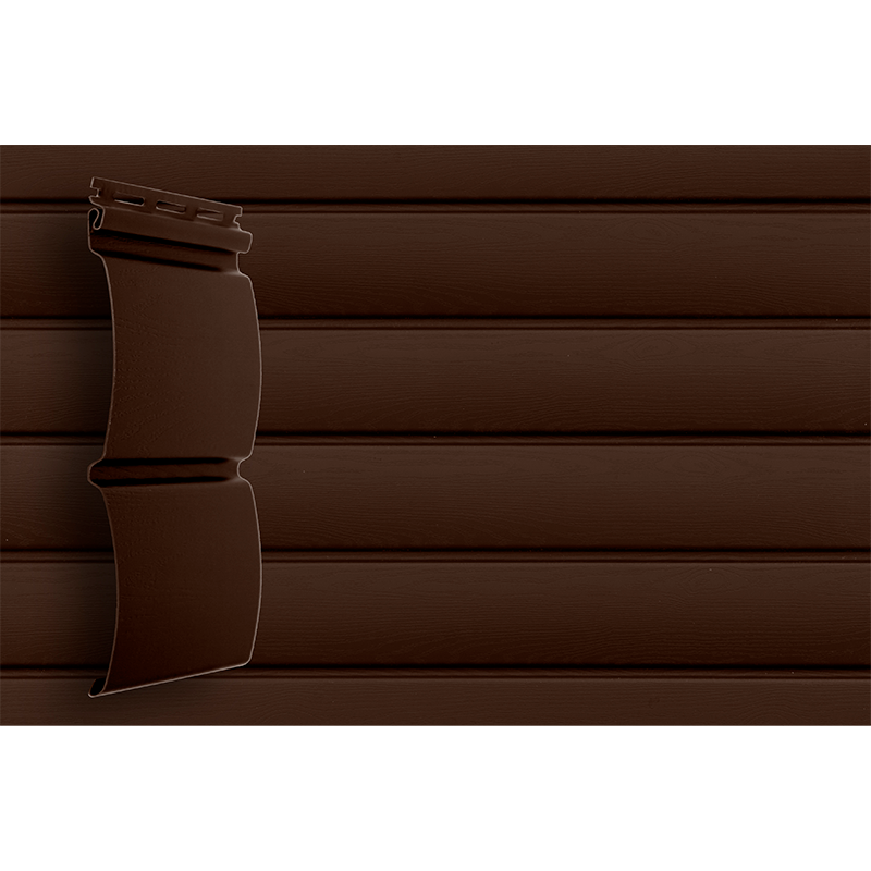Вид профиля по декоративным характеристикам — Блокхаус. Цвет Темный дуб — защищен от выцветания.