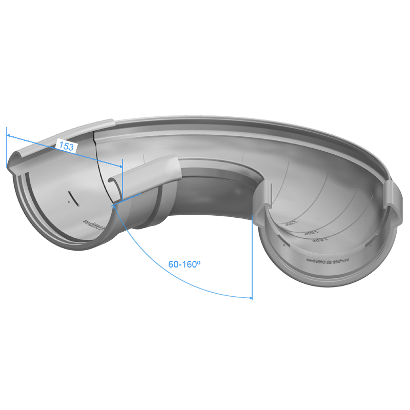 Угол желоба регулируемый 60° – 160° Docke LUX D141 Графит RAL7024