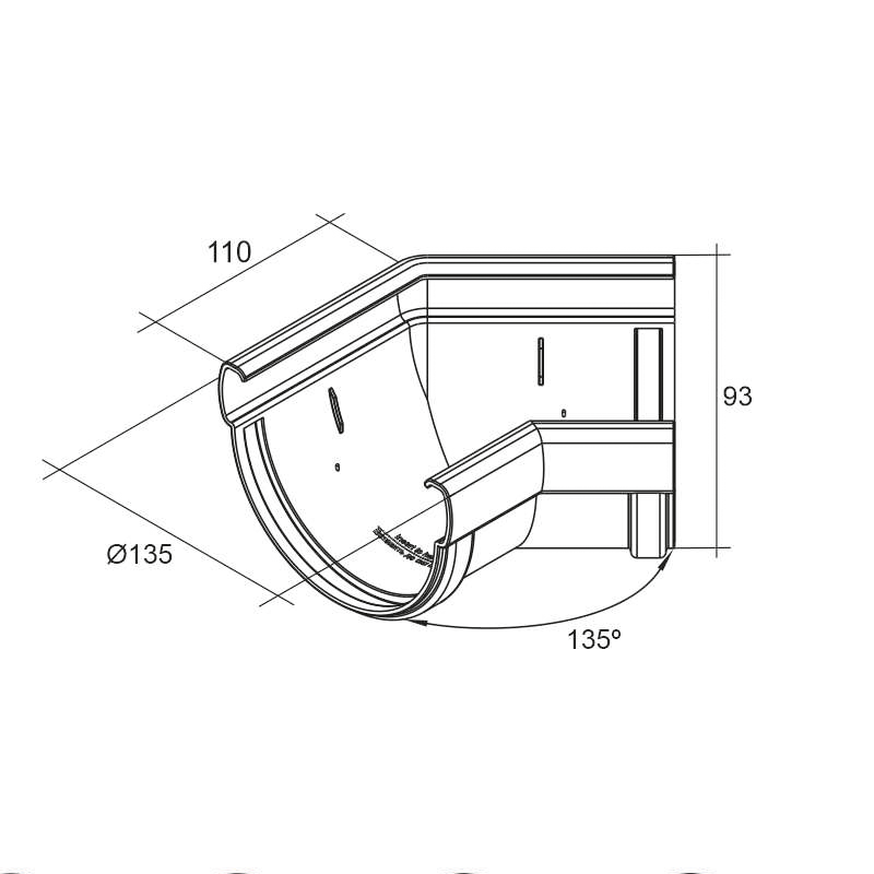 Угол желоба универсальный 135° Grand Line ПВХ Дизайн D135 Графит RAL7024