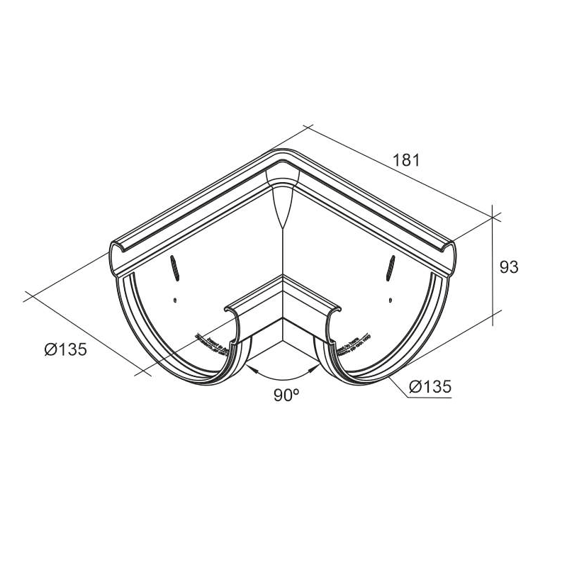 Угол желоба универсальный 90° Grand Line ПВХ Дизайн D135 Черный RAL9005