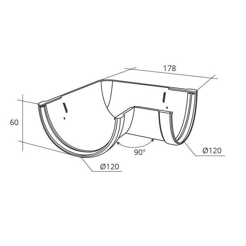 Угол желоба универсальный 90° Grand Line ПВХ Классика D120 Графит RAL7024