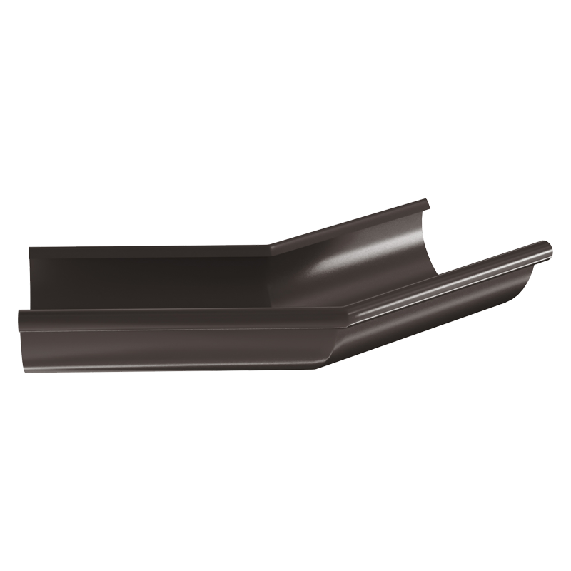 Угол желоба наружный 135° D150 мм RAL8017 Коричневый с покрытием Полиуретан (PUR) от производителя Аквасистем. Предназначен для соединения водосточных желобов под углом 135 градусов, для смены направления движения воды в стоке. Обеспечивает непрерывность линии водостока. Устанавливается на наружных/выступающих углах здания.