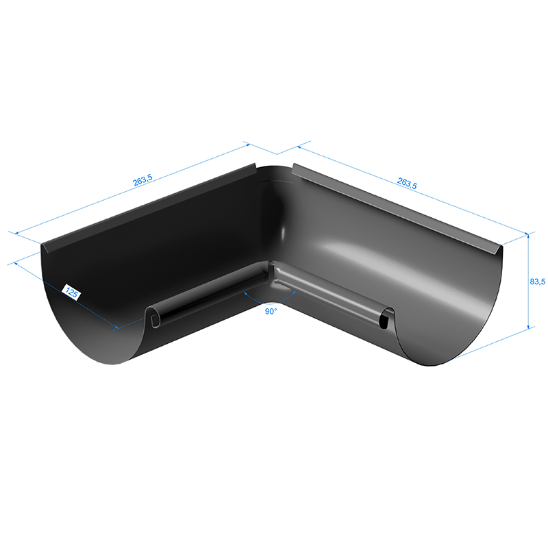 Угол желоба внутренний 90° Docke STAL PREMIUM D125 RAL8019 Шоколад