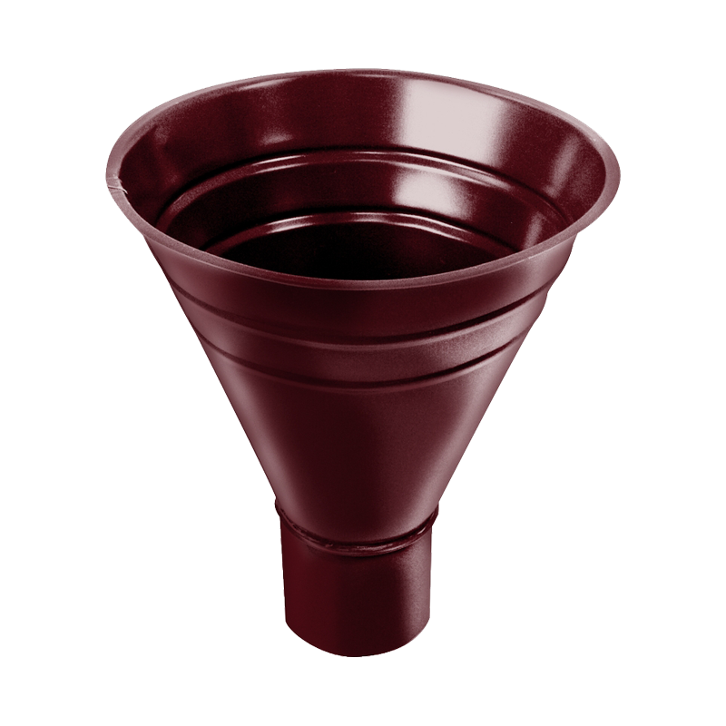 Воронка водосборная D125/90 мм винно-красная RAL3005 с покрытием Granite Double от Гранд Лайн. Элемент водосточной системы, применяется для сбора воды со сложных форм крыш, фальцевых кровель, в тех случаях, когда сток не организован посредством желоба.