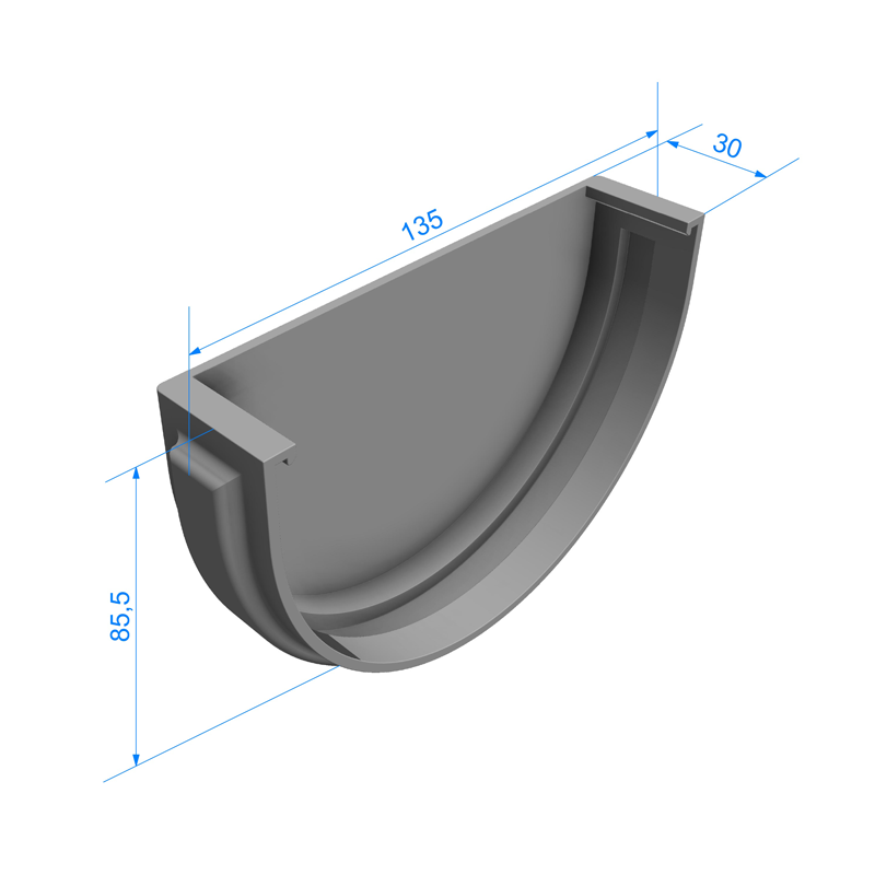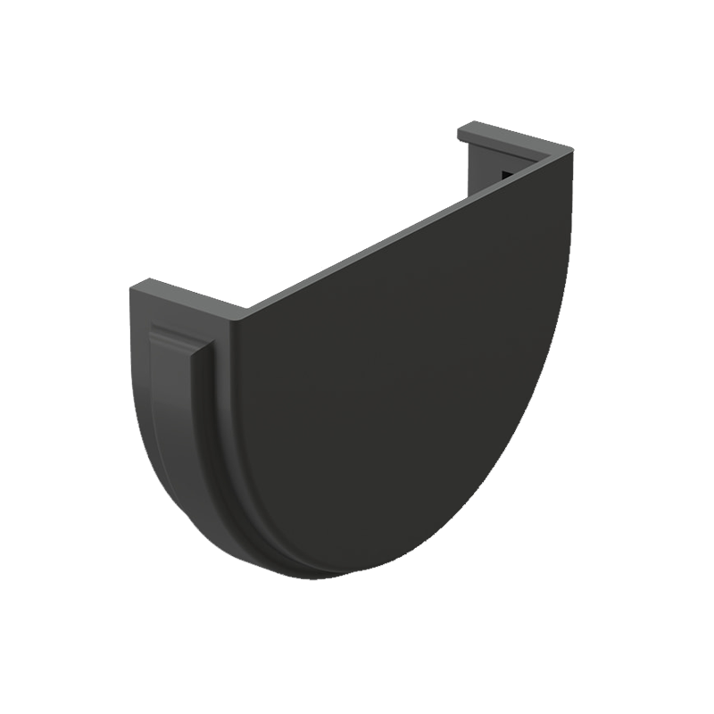 Заглушка желоба универсальная D120 мм цвета Графит серии PREMIUM от производителя Docke. Устанавливается на концах водосточных желобов для обеспечения герметичности. Заглушка универсальна, её можно крепить к желобу как справа, так и слева.